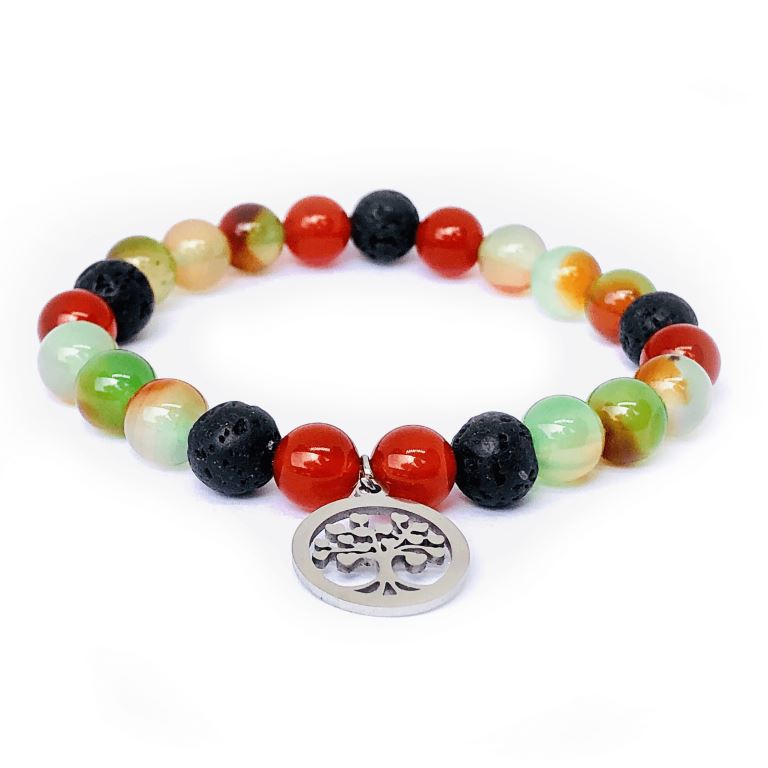 Minerální náramek achát, karneol, lávový kámen - AMAZONKA
