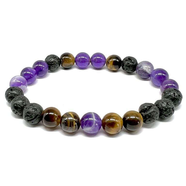 Minerální náramek ametyst, lávový kámen, tygří oko - MEDITACE - žena
