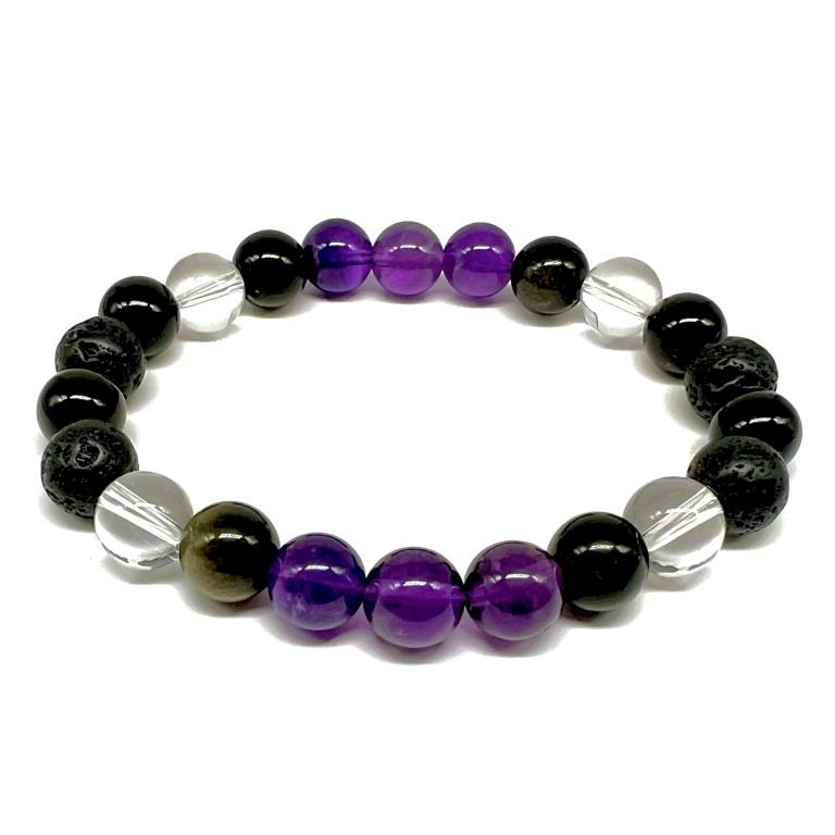 Minerální náramek ametyst, obsidián, onyx, láva, křišťál - INSPIRACE - žena