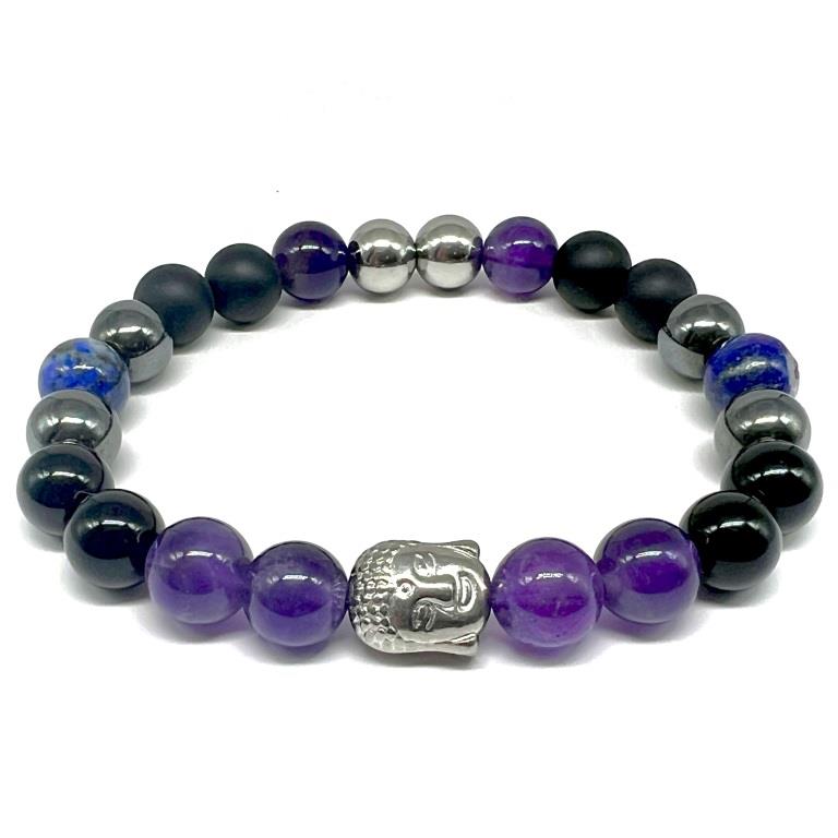 Náramek Buddha je tvořen ze 4 minerálů, které symbolizují 4 vznešené pravdy základního učení o Buddhismu. Onyx pro posílení vnitřní síly spojený s první vznešenou pravdou Dukkha o neuspokojivém světském bytí. Hematit pomáhá s uzemněním a posilováním vitality, v náramku symbolizuje Samudaya, pravdu druhou o touze, která vede k utrpení. Třetí pravda Nirodha o odstranění příčiny utrpení vyžaduje klid, meditaci a moudrost, proto ji zastupuje Ametyst. Čtvrtá pravda Magga, osvobození a právo uvědomění symbolizuje Lapis lazuli, který přináší moudrost a duchovní poznání.