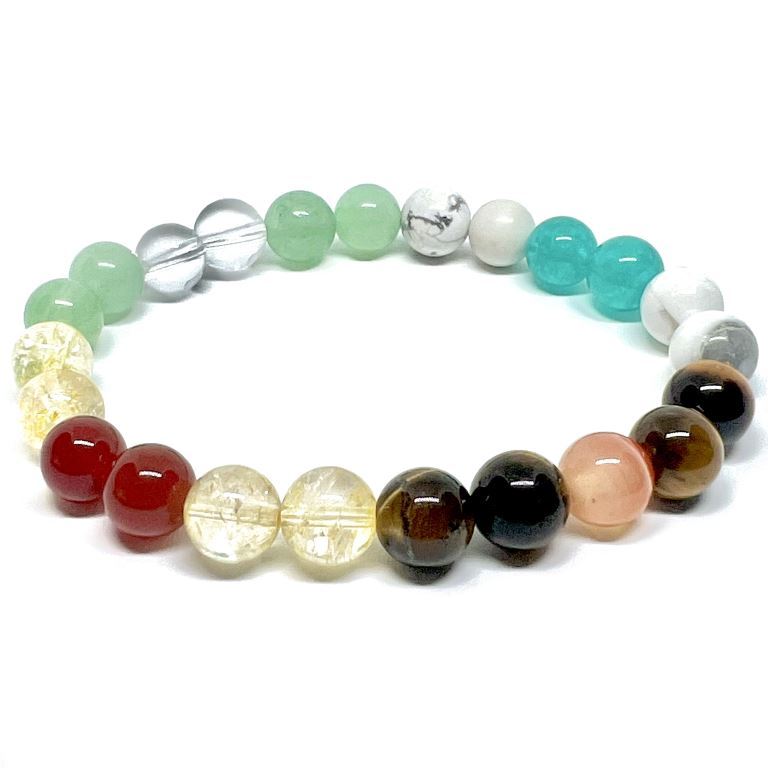 Čtyři roční období je náramek tvořený z minerálních kamenů uskupených do čtyř samostatných částí. Náramek je z každé strany jiný, proto podle toho, jak jej budete mít natočený, uvidíte jiné období. Jemný avanturín a křišťál symbolizují jaro, léto je zastoupeno hřejivým citrínem a karneolem. Barvy podzimu přináší tygří oko a karneol. Howlit a modravý jadeit zrcadlí klid a eleganci ledových tónů zimy. S jeho proměnlivým vzhledem si užijete a přitáhnete pozornost i okolí. Náramek čtyři roční období je skvělým talismanem pro milovníky přírody a krásy. Kombinace minerálů nabíjí energií a propojuje stylový vkus s prchavostí času a kouzlem čtyř ročních období.