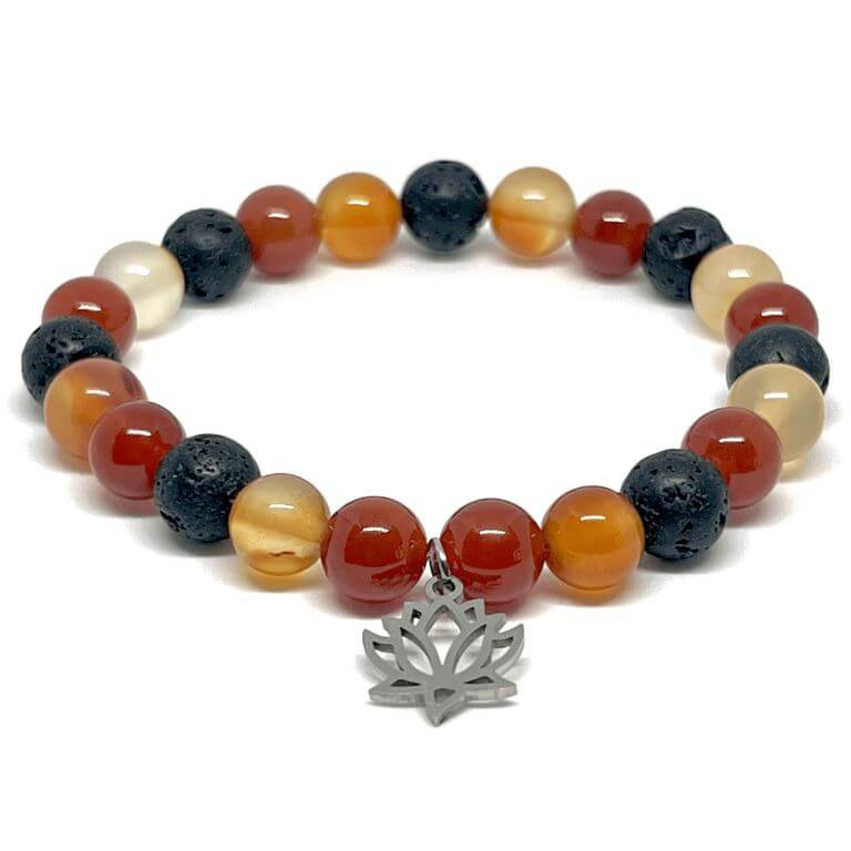 V tomto náramku z minerálů "Magma" je ve spojení s dalším krásným přírodním minerálem, karneolem. Karneol je kámen vyrovnávající, dodávající sebejistotu, podporující naše rozhodnutí.