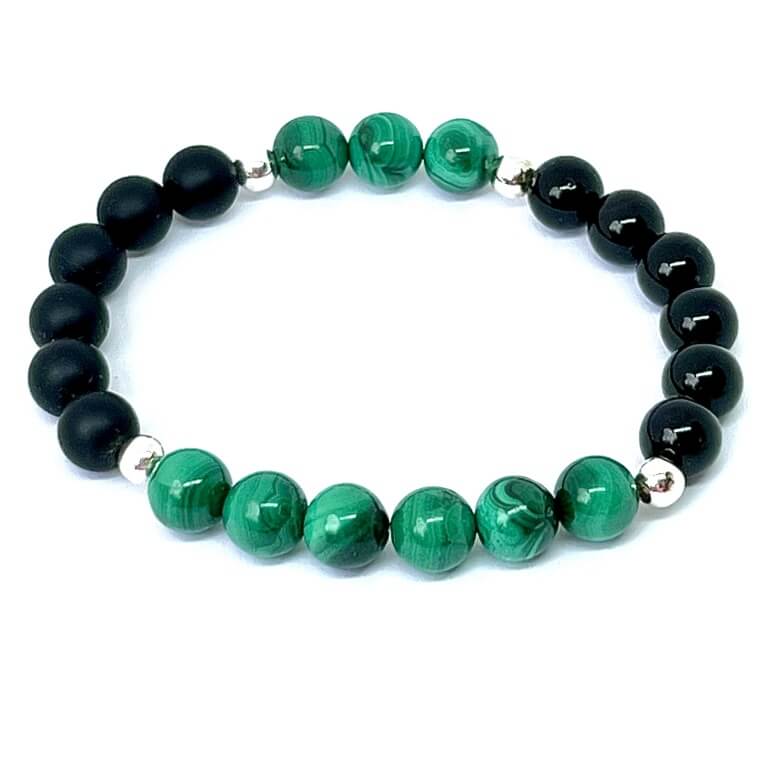 Minerální náramek malachit, onyx - ODHODLÁNÍ (stříbro Ag925)