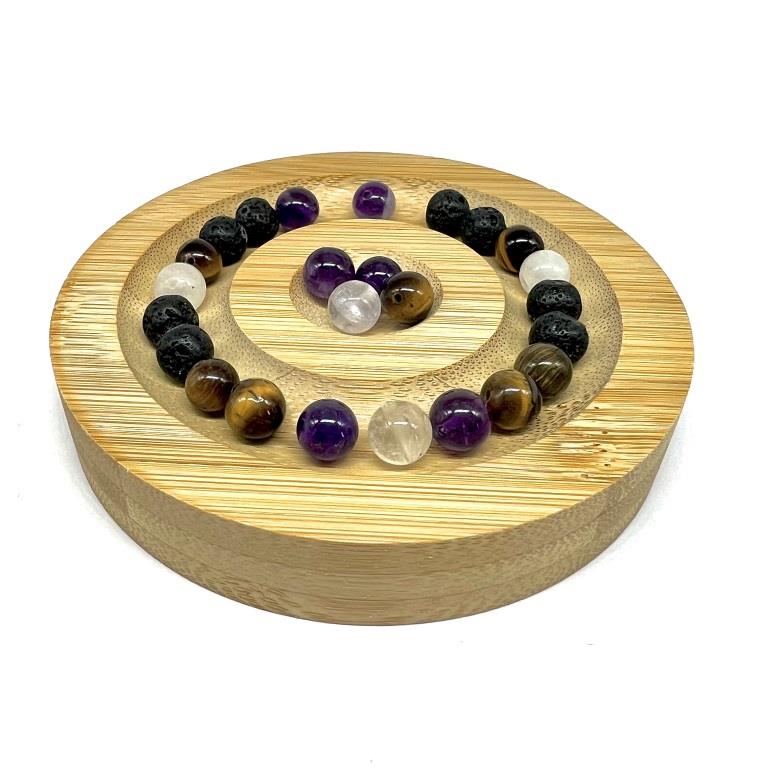Minerální náramek vyrobím z 8mm kuliček za použití těchto minerálů: Achát, Ametyst, Avanturín, Citrín, Granát, Jadeit, Jaspis, Karneol, Křišťál (čirý, mléčný, praskaný), Lapis lazuli, Lávový kámen, Obsidián, Onyx, Růženín, Tygří oko (hnědé, růžové), Tyrkys.