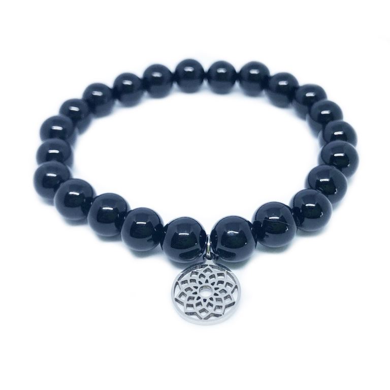 Minerální náramek z onyxu je silný, zajímavý a poutavý osobní talisman. Onyx je přírodní druh vápence, který se vyznačuje elegantním černým povrchem s výrazným leskem. Doplněný příveskem z chirurgické oceli. Tento minerální náramek z lesklého onyxu je nejen stylovým doplňkem, ale také symbolem síly a vyváženosti. Bez ohledu na to, zda ho nosíte jako módní doplněk nebo pro jeho energetické vlastnosti, určitě přitáhne pozornost a dodá Vám osobní půvab.