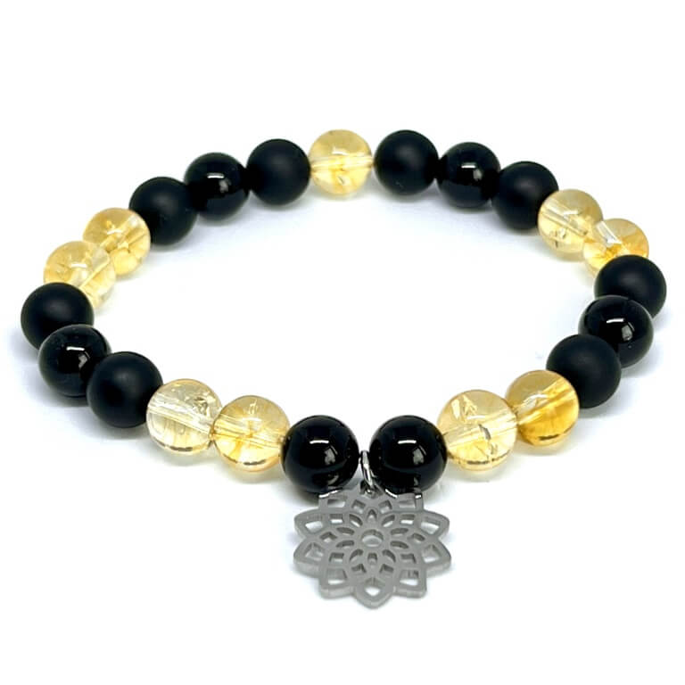 Minerální náramek z onyxu a citrínu, který vzhledem připomíná vosičku v sobě nese sílu minerálního kamene onyxu, který nám pomáhá jít si za svým a zároveň přináší lehkost a uklidnění. Další důležitý minerál citrín, tedy kámen slunce inspirace, tvořivosti a hojnosti ve všech směrech.