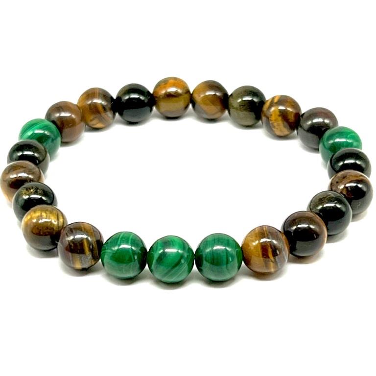 Malachit- je velice silným kamenem ochrany, odhodlání a motivace. Uctívali ho již staří Egypťané a Řekové. Podporuje přátelské vztahy, uvolňuje zábrany, kreativitu, fantazii, vize, rovnováhu a harmonii. Dodává odvahu brát zodpovědnost za svoje rozhodnutí a cítit se svobodně. Přináší vhled, intuici, uvolnění, pozitivní myšlení, radost a odvahu žít intenzivněji. Vnímat přítomnost. Pomáhá na duševní problémy a dyslexii. Snižuje otoky, křeče, podporuje hormonální rovnováhu a imunitní systém.