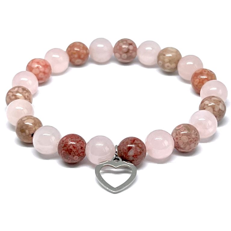 Vhodné na zápěstí 16-17 cm. Velikost korálků je 8mm. Přívěsek je z chirurgické oceli 316L (srdíčko). Srdce je symbolem lásky.
