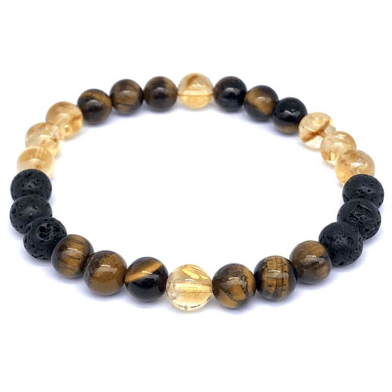 Zemitý minerální náramek Energie je připravený, aby Vám dodal duševní i fyzickou energii. Podpoří Vás v sebedůvěře při Vaší životní cestě, odbourá negativní energie a přinese vitalitu a vyrovnanost. V minerálním náramku z tygřího oka, citrínu a lávového kamene nalezne zalíbení můž i žena, vyberte si svou variantu.