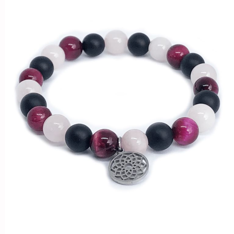 Minerální náramek tygří oko, růženín, onyx - PETÚNIE